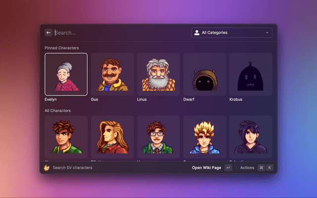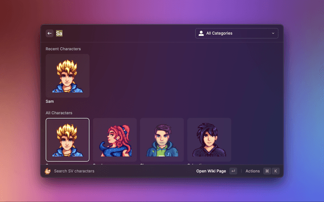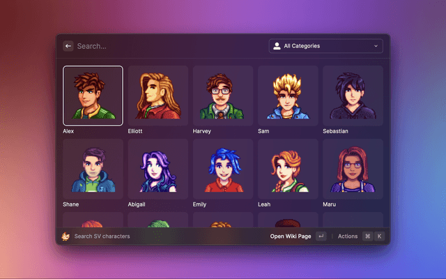 Search and open Stardew Valley's characters in the wiki