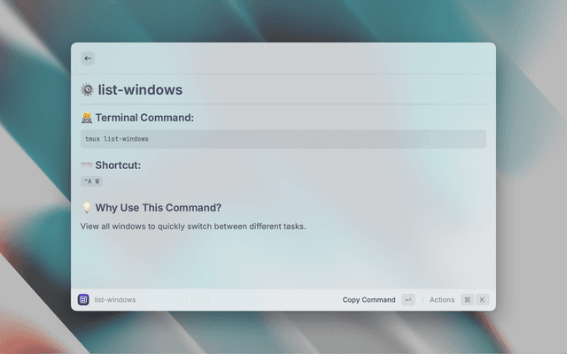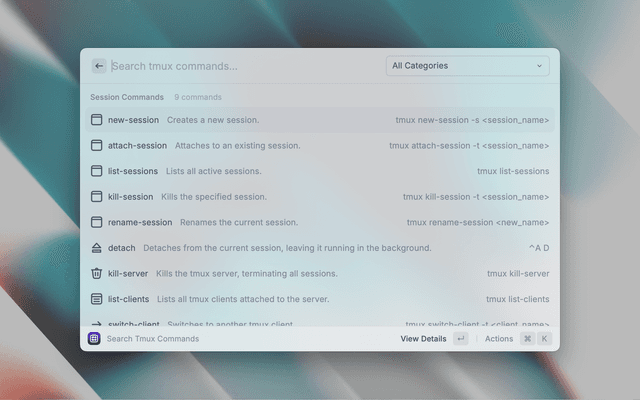 - Open Raycast and search for Search Tmux Commands