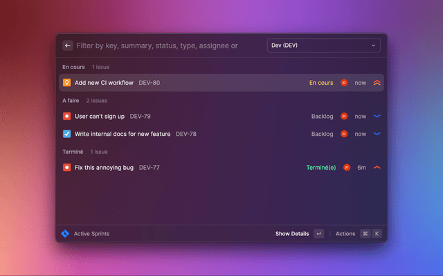 ⌘ + K and scroll down to Configure Extension. Enter your email, API token, and Jira site URL (without https://) on the right. Note that all three must be provided to use API tokens.You can change the default Git branch name in preferences; the following keys are available: