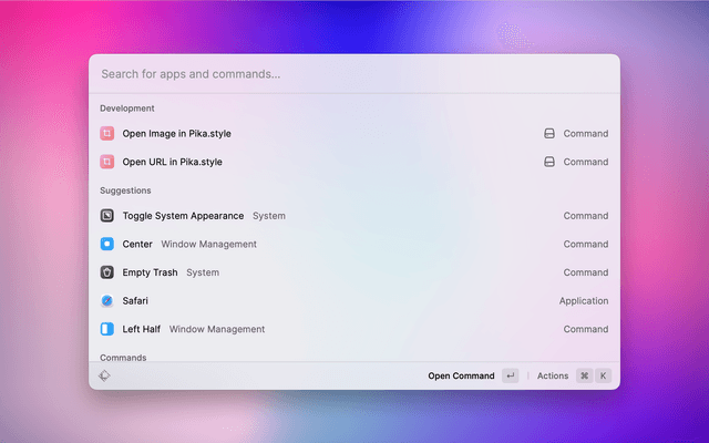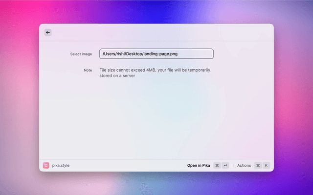 • Open Image in Pika: You can select an image using Cmd+O from your system and open directly in Pika