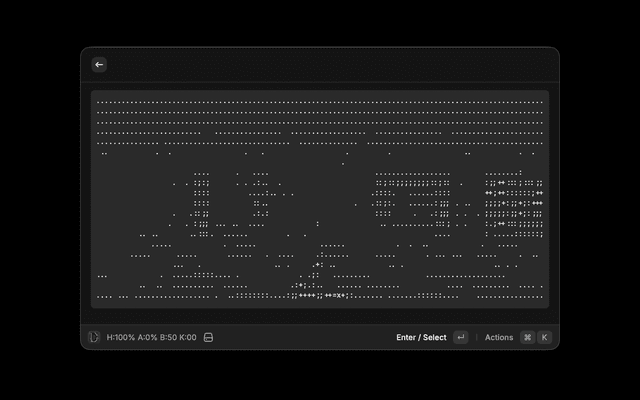 Display Resolution: The game renders at 106x20 character resolution in ASCII format to fit within Raycast's text-based display environment.