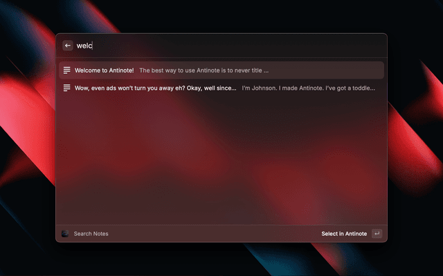 Extension to control Antinote app with Raycast.