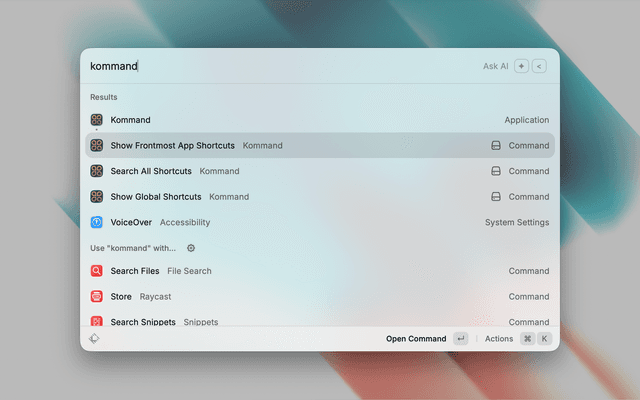 • Open Kommand directly from Raycast to add or edit shortcuts