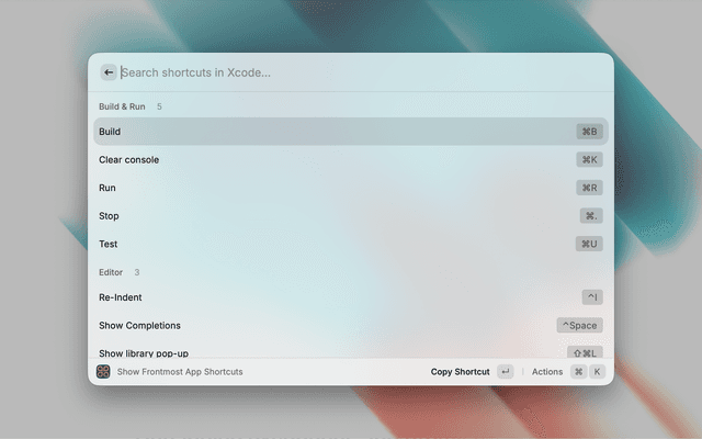 Show Frontmost App Shortcuts