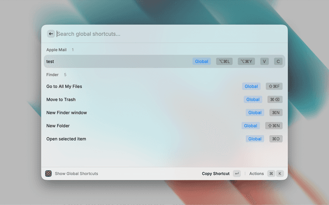 Show Global Shortcuts