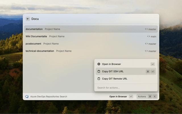 Find a repository quickly, see which branch is default or copy the .git URL.