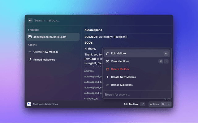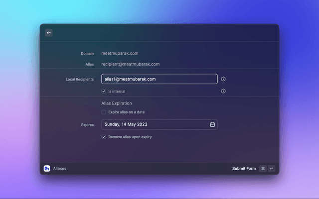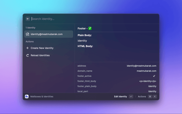 This is a Raycast extension for Migadu. With this extension, you can View, Create, Update or Delete - Mailboxes, Identities, Aliases, Rewrites in your Migadu account.