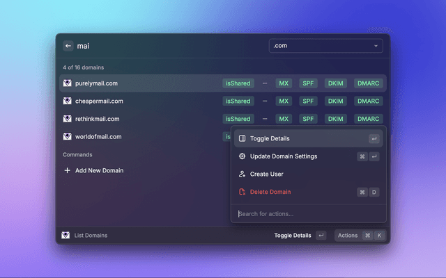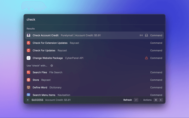 This is a Raycast extension for Purelymail - Cheap email for everyone.