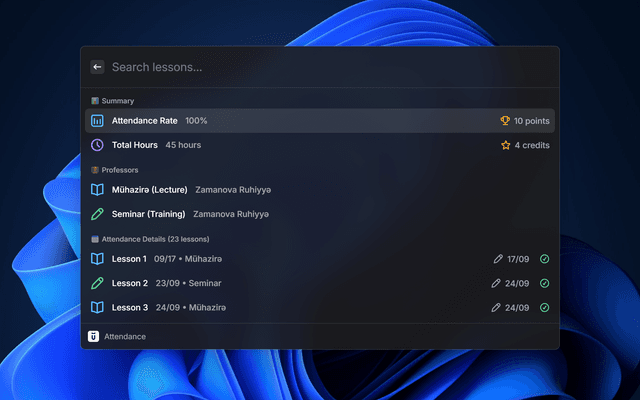 Access your Azerbaijan Technical University (AzTU) Learning Management System (LMS) data directly from Raycast. Check schedules, read announcements, and review academic records without opening a browser.
